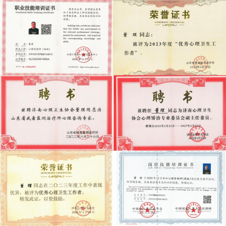 董理教授是山东省心理矫治领域的权威专家,高级心理咨询师,山东省司法厅强制戒毒监测治疗所心理矫治专家,济南市心理卫生协会心理矫治专委会主任委员,主导多项心理健康课题研究;全国工商联高级心理咨询师、泰山职业技术学院客座教授;复旦大学太平洋金融学院EMBA,独创“国学反脆弱选择力”课程,融合心理学与东方智慧,受到广大听众的一致好评。